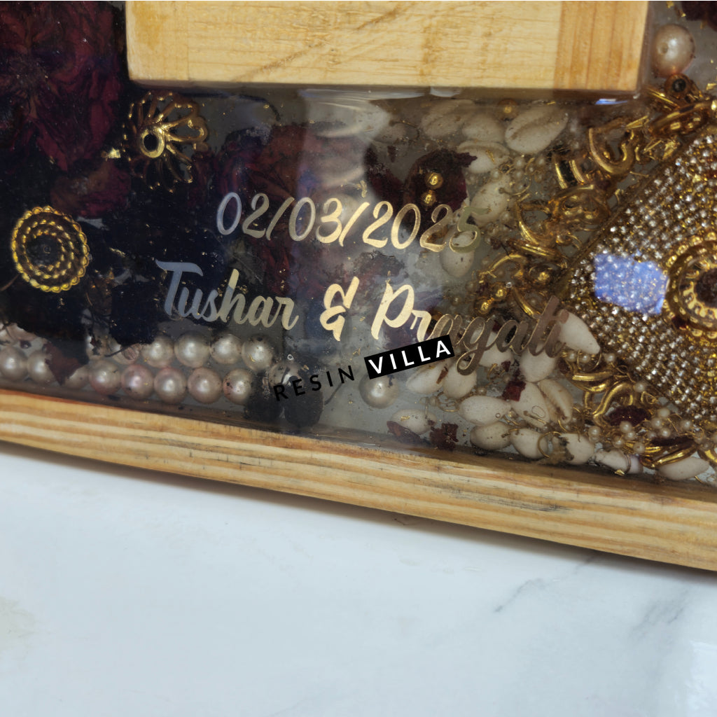 "فن الراتينج، الحفاظ على الفارمالا، إطار صورة خشبي مقاس 12 بوصة، مجوهرات الزفاف، الحفاظ على الفارمالا للزوجين"