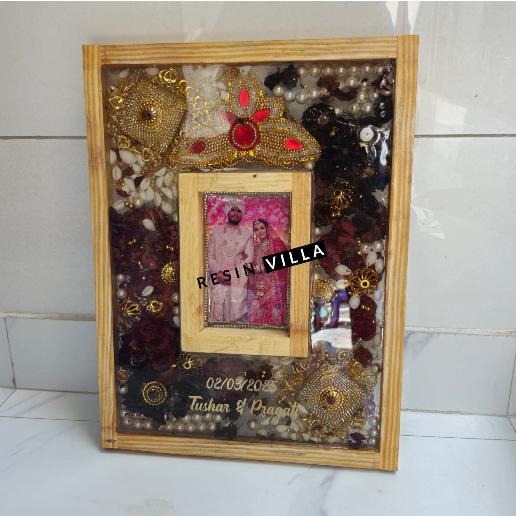 فن الراتينج، الحفاظ على الفارمالا، إطار صورة خشبي مقاس 12 بوصة، مجوهرات الزفاف، الحفاظ على الفارمالا للزوجين