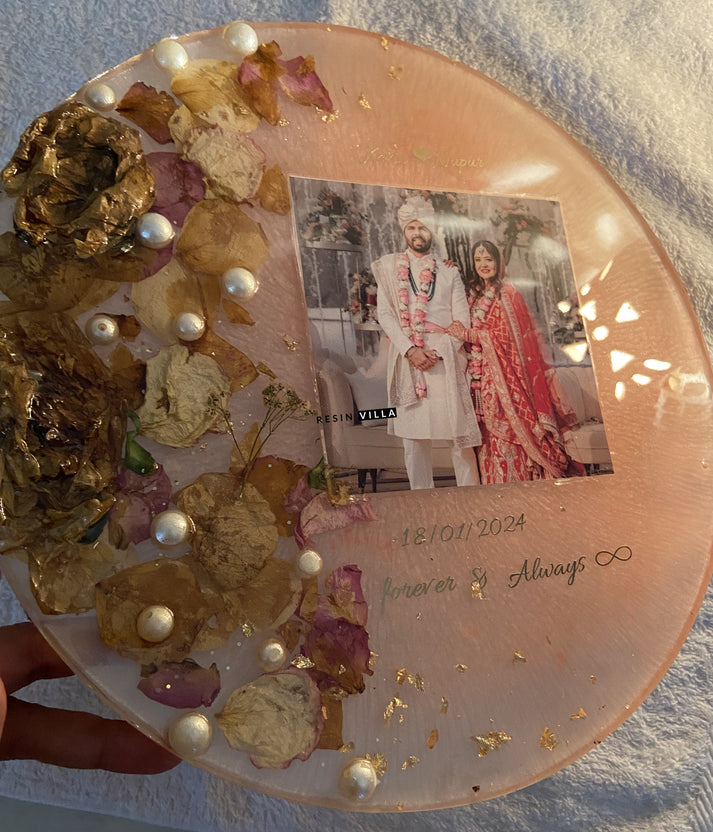 Searching for stunning resin art in Bangalore? Explore our unique collection of handcrafted resin artworks that bring creativity and elegance to any space. Specialize in creating a variety of eye-catching pieces, Resin Art Customise Product includes, Personalise Resin . LED Lamp, Varmala Preservation, Varmala Preservation in Wooden Frame, Flower Preservation, Preserve Wedding Bouquet, Photo Frames, Resin Jewellery, Resin Clocks, Mantra Frames, Home Decor, Personalised Gifting, Customised Gifting, Customised Wedding Gifting, Wedding Invitation, Engagement Platter, keepsakes, wall art, and decorative items, Tray Coster vibrant coasters, captivating wall decor, and custom furniture etc, all made from high-quality materials.