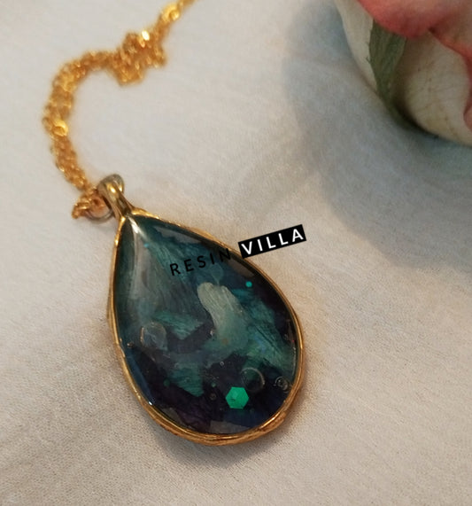 Resin Art, Jwellery, Golden Drop Bezel Shape Pendant For Her