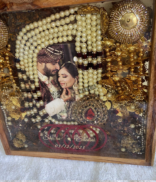 Varmala Preservation, 12" Wooden Photo Frame, Wedding Jewellery, Varmala Preservation For Couple