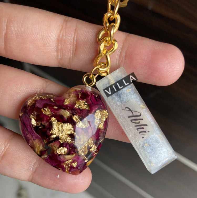 रेज़िन आर्ट, कीचेन, हृदय आकार गुलाब संरक्षण
