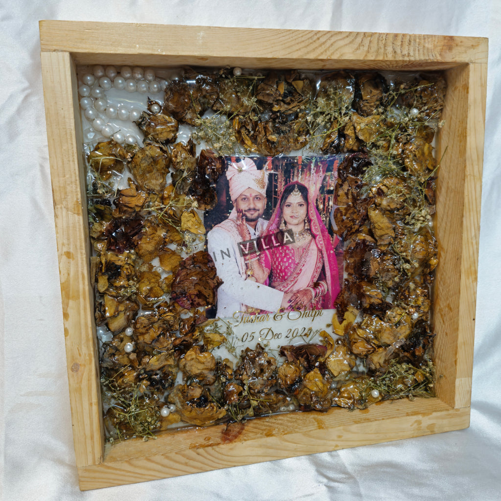 "रेज़िन आर्ट, वरमाला संरक्षण, 12\" लकड़ी का चित्र फ़्रेम, विवाह आभूषण, युगल के लिए वरमाला संरक्षण"